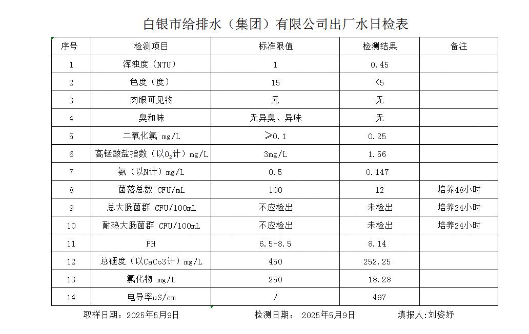 2025年5月9日水質(zhì)檢測(cè)報(bào)告